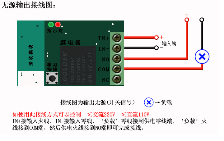 適用于:電機、馬達、電燈、風扇、電視、等控制所有12-260V電源通斷功能