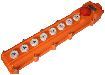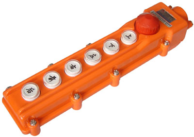 供應超力防雨型起重機用按鈕開關,拉線手柄開關,包括帶急停、不帶急停,帶起停按鈕,不帶起停按鈕等各種形式,按鍵數量從兩位一直到十位。