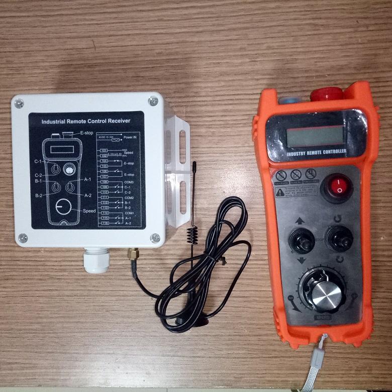 $ 遙控器手持機體積小,采用鈕子開關和大旋鈕速度調節,方便工人單手戴手套操作。