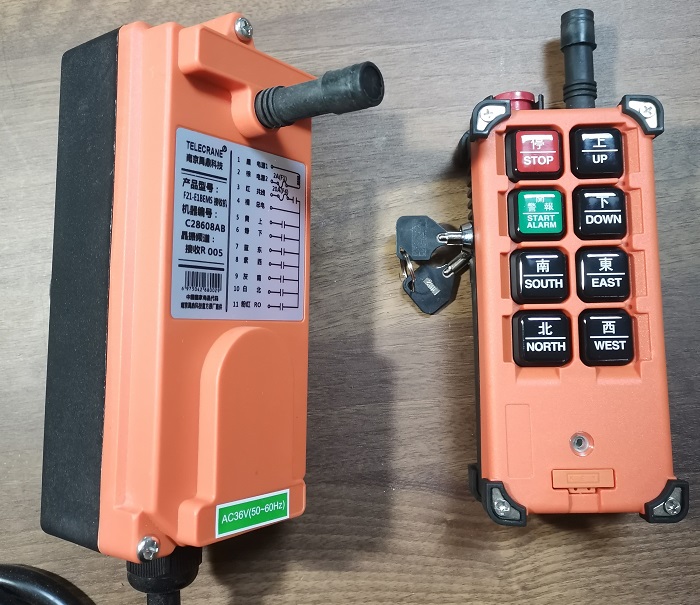 禹鼎新品F21-E1B EMS鑰匙款急停款電動葫蘆遙控器,針對市場安檢需求和老款F21-E1B遙控器手柄的磁性鑰匙經常脫落、丟失,
