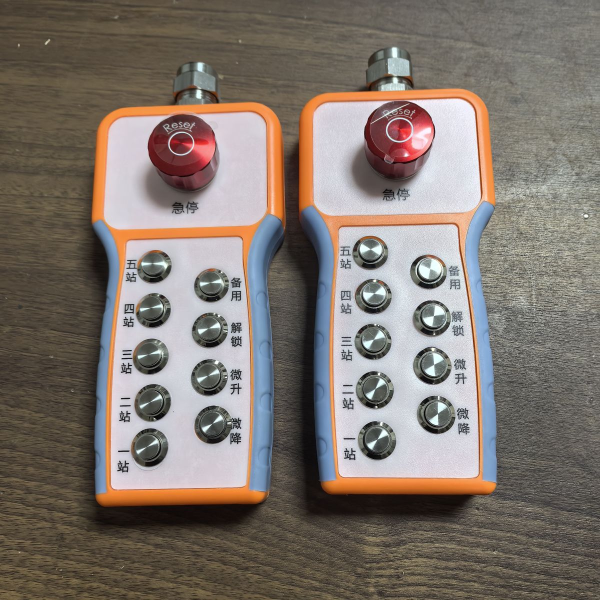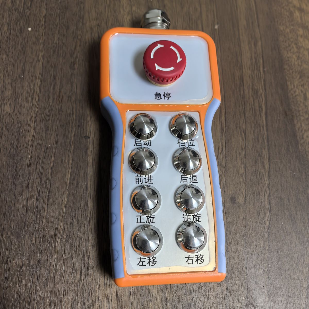 鹽城瑞久機電科技有限公司可以為客戶定制各種工業設備線控操作手柄,拉線手柄,元器件操作形式、輸出形式、都可以定制。如點動按鈕、自鎖按鈕、兩檔旋鈕、三檔旋鈕、多檔旋鈕、船型開關、翹板開關、可調電位器、編碼器、帶燈按鈕、反饋指示燈等都可以制作哦。可以根據要求配備電纜。手柄面板可以根據要求做普通PP貼紙面板、PVC面板、不銹鋼面板。