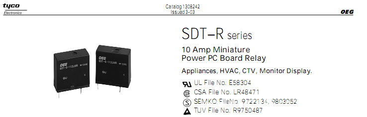 產品系列 TYCO/泰科 型號 供應繼電器SDT-S-112LMR